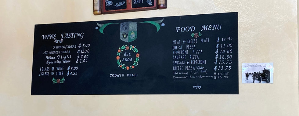 It's the 15th of April and when I left the house to go to Heidi’s it was 14 degrees and there was about an inch of snow on the ground. Yep; got to love the weather in Minnesota. After arriving at Heidi’s we decided that it was time to try out our first winery together. Heidi suggested that we try Millner Heritage Vineyard and Winery in Kimball MN. When we arrived at the Winery there were only two cars in the parking lot and the vineyard was still in its winter hibernation. The vineyard sits on 10 acres and has a large building being used for the winery and event area. When we entered the building we were greeted by a cheerful woman behind the bar. As we shook off the cold we looked at the menu and she described our options.
